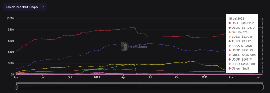 En la actualidad, USDT de Tether y USD Coin (USDC) de Circle representan el 87% de la oferta total en circulación de todas las stablecoins vinculadas al dólar estadounidense.