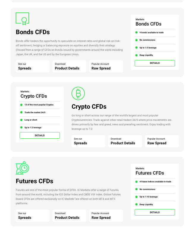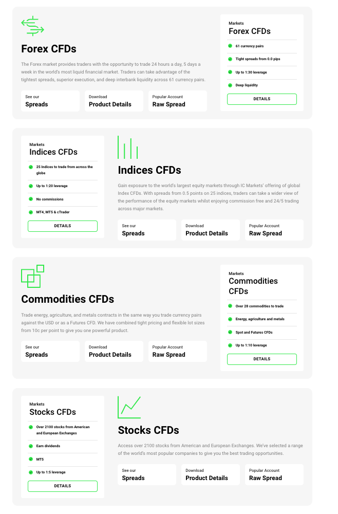 IC Markets ofrece una amplia gama de activos de trading en diversos instrumentos financieros.