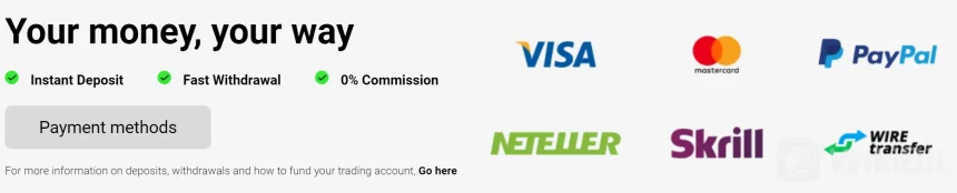 | Método de pago | Transferencia bancaria, tarjeta de crédito/débito, Skrill, Neteller, FasaPay, PayPal, UnionPay y más |