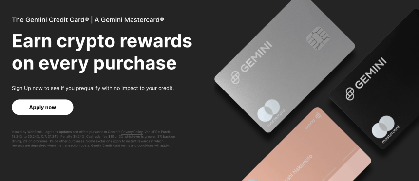 La Tarjeta de Crédito de Gemini, emitida por WebBank, permite a los usuarios ganar recompensas en criptomonedas en compras diarias. Los titulares de tarjetas pueden obtener un 3% de reembolso en criptomonedas en restaurantes, un 2% en compras de comestibles y un 1% en todas las demás transacciones elegibles. Las recompensas se pueden canjear en más de 60 criptomonedas, aumentando pasivamente las tenencias de criptomonedas de los usuarios.