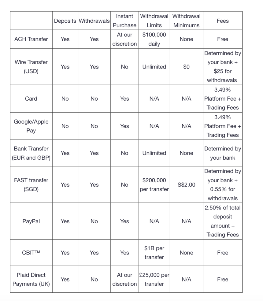 CBIT™: CBIT™ está disponible para residentes de Estados Unidos. Los depósitos y retiros son instantáneos.