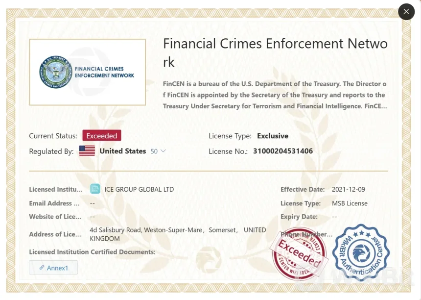 WikiBit 2023-08-17 20:37ICE Groupes una empresa de cambio de moneda virtual con sede en estados unidos. fue fundada en 2018 y opera bajo la autoridad regulatoria de la red de fiscalización de delitos financieros (fincen). th