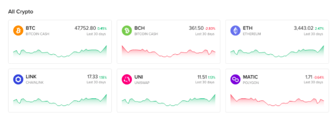 ofrece a los usuarios acceso a más de 50 criptomonedas diferentes. Algunas de las criptomonedas más populares que admite la plataforma son bitcoin (btc), ethereum (eth), litecoin (ltc), lido Finance (ldo), optimismo (op), binance coin (bnb), cardano (ada) y aave. (aave).