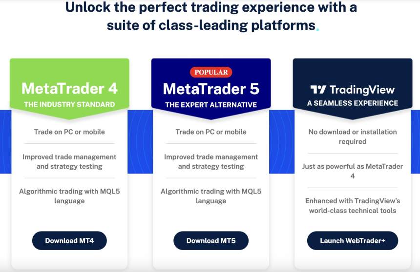 MetaTrader 4 (MT4) y MetaTrader 5 (MT5) son plataformas reconocidas en la industria del trading financiero, que ofrecen funciones sólidas tanto para usuarios de PC como para dispositivos móviles. MT4 admite el trading algorítmico a través del lenguaje MQL5, lo que permite a los traders automatizar sus estrategias. Mientras tanto, MT5 sirve como una alternativa experta con características similares, incluyendo una gestión avanzada de operaciones y funcionalidades de prueba de estrategias adecuadas para traders que buscan herramientas y flexibilidad adicionales.
