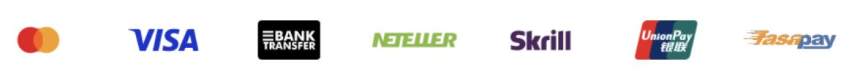 Mastercard, Visa, Transferencia bancaria, Neteller, Skrill, UnionPay y Fastpay.