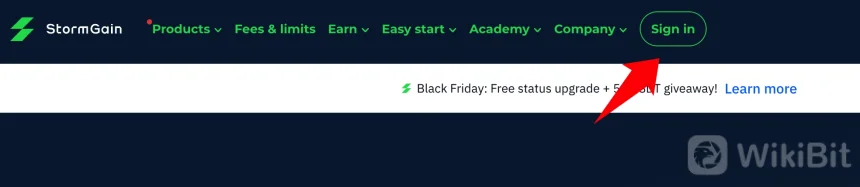 Simulan sa pagpunta sa opisyal na website ng StormGain. Hanapin ang"Sign In" button, na karaniwang naka-display nang malaki.