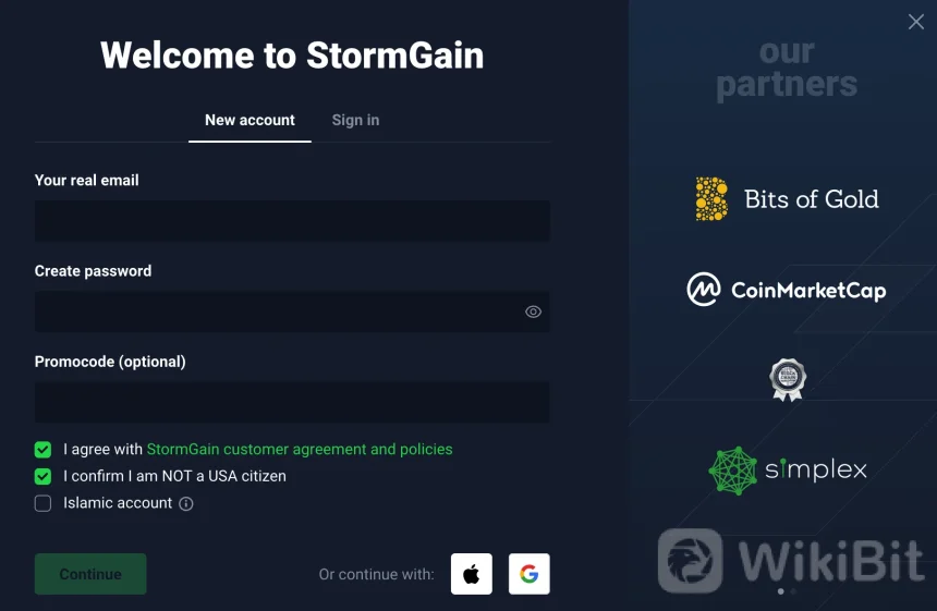 Inayos ng StormGain ang proseso ng pagbubukas ng account upang gawing accessible para sa mga user na interesado sa cryptocurrency trading. Narito ang isang maikling pagsusuri kung paano magbukas ng account: