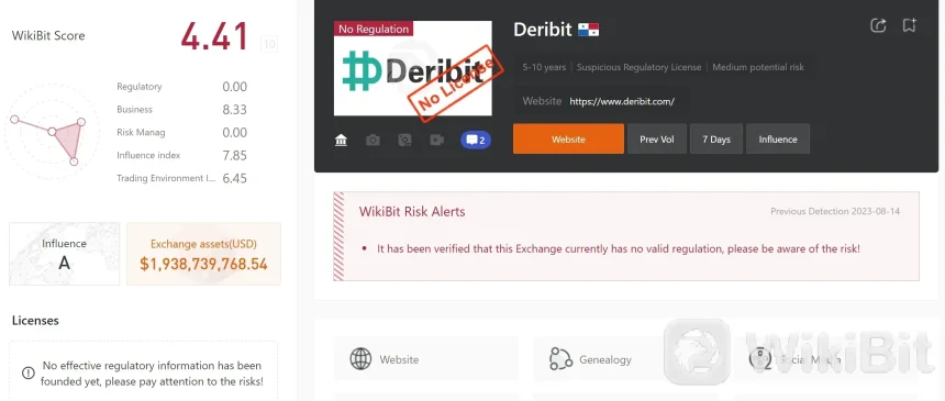 Deribitkasalukuyang gumagana nang walang kumpirmadong regulasyon. mahalagang lumapit nang may pag-iingat dahil sa kakulangan ng itinatag na pangangasiwa ng regulasyon.