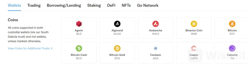 BitGo nag-aalok ng higit sa 600 mga cryptocurrency na may 0.25% na bayad sa komisyon para sa mga transaksyon ng Bitcoin at maraming pagpipilian ng wallet. Ang Binance ay naglalista ng higit sa 350 mga cryptocurrency na may mga bayad sa transaksyon na hindi hihigit sa 0.10%, mayroon itong Secure Asset Fund para sa mga User, at mayroon isang malawak na user base na higit sa 12 milyon. Ang Gate.io ay nangunguna sa 1,400+ na nakalistang mga cryptocurrency, sumusuporta sa mga deposito sa 20+ fiat currencies, at nagbibigay ng isang Earn on Deposits program, kasama ang mga HODL at Earn options. Ang mga pagkakataon para sa staking at pagkakamit ay magagamit din sa mga platapormang ito.