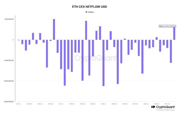 Nakikita ng Marso ang Halos $1 Bilyon Sa Ethereum Netflow Sa Mga Sentralisadong Palitan