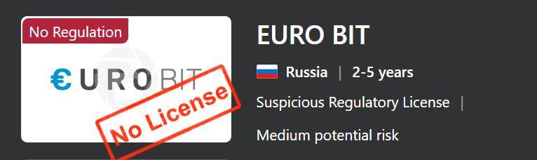 Ang EURO BIT ay nag-ooperate nang walang regulasyon mula sa anumang awtoridad sa pananalapi. Ito ay nangangahulugang dapat mag-ingat ang mga gumagamit at maunawaan ang mga panganib na kasama sa paggamit ng palitang ito.
