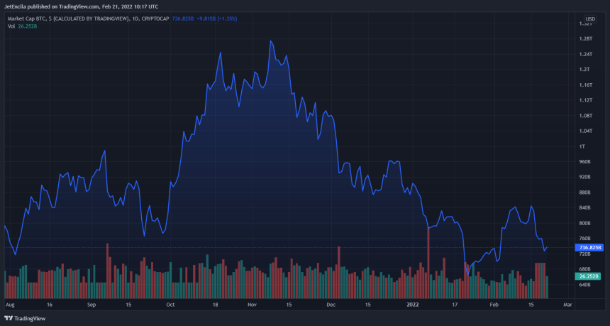 total kapitalisasi pasar BTC di $736,97 miliar di grafik harian | Sumber: TradingView.com