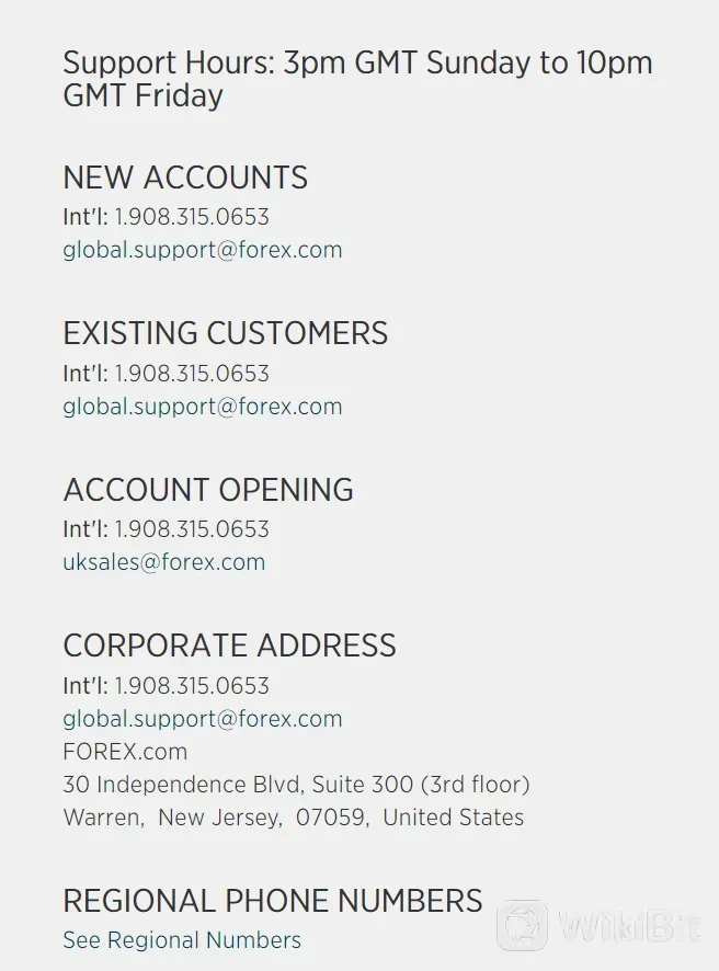 Pengguna dapat menghubungi mereka melalui telepon di 1.877.367.3946 atau menggunakan platform online seperti situs web resmi (https://www.forex.com/id/ dan https://www.forex.com/cn/).