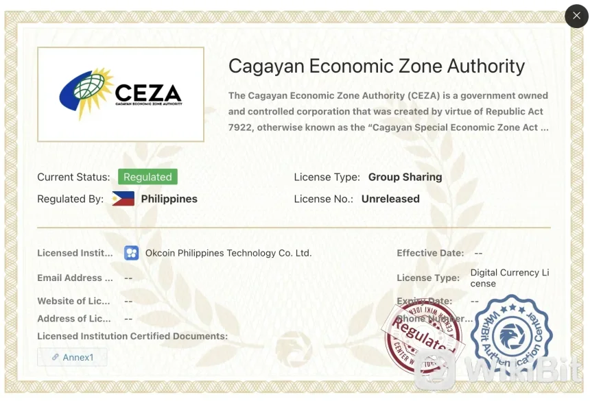 adalah rdiregulasi oleh Financial Services Agency (FSA) di JepangNomor peraturan yang ditetapkan oleh OJK adalah Biro Keuangan Daerah Kanto No. 00020. Bursa juga demikian diatur oleh Sistem Perizinan Multinegara Nasional (NMLS) di Amerika Serikat, dengan nomor peraturan 1767779. The Otoritas Zona Ekonomi Cagayan (CEZA) di Filipina menyediakan peraturan untuk , meskipun nomor peraturan spesifiknya belum dirilis.