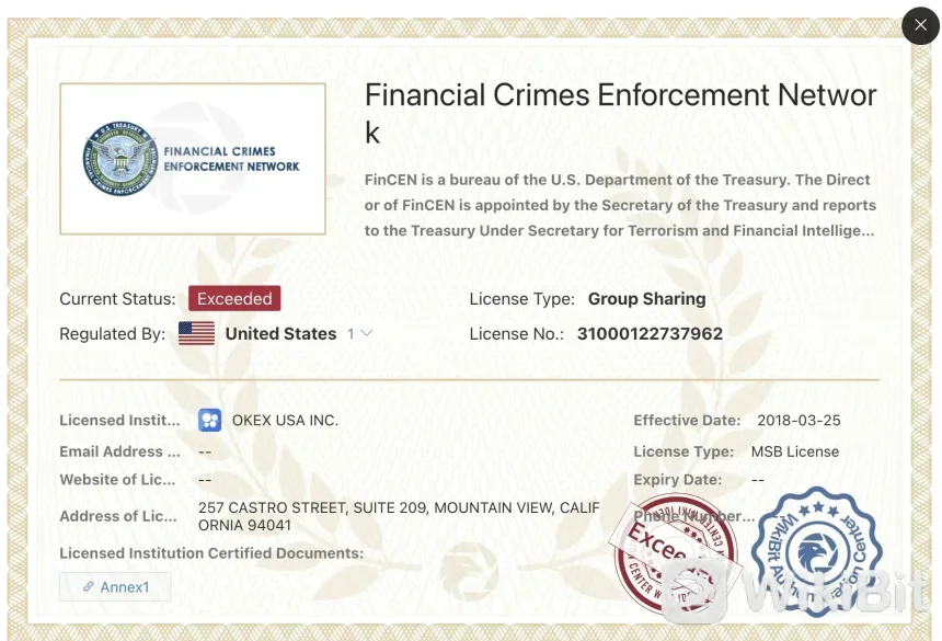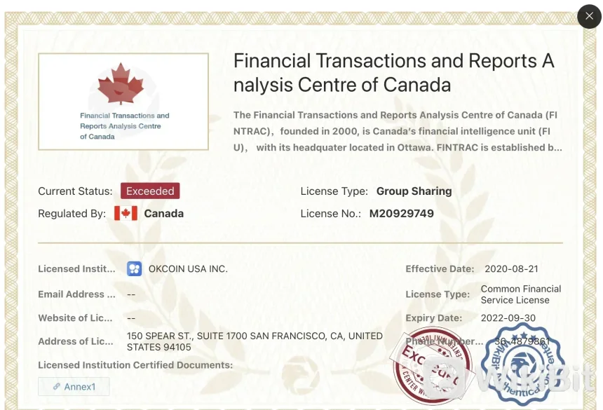 Pertukaran juga diatur oleh Pusat Analisis Transaksi dan Laporan Keuangan Kanada (FINTRAC) dengan nomor peraturan M20929749, Jaringan Penegakan Kejahatan Keuangan (FinCEN) di Amerika Serikat, dengan dua nomor peraturan terpisah: 31000122737962 dan 31000155908109. Namun, kita dapat menemukan status saat ini dari ketiga pengawasan peraturan ini telah terlampaui.