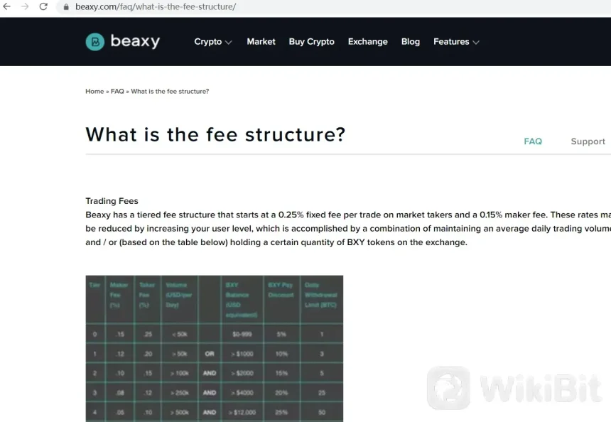 A: Beaxy mengenakan biaya 0,25% untuk takers dan biaya 0,15% untuk makers.