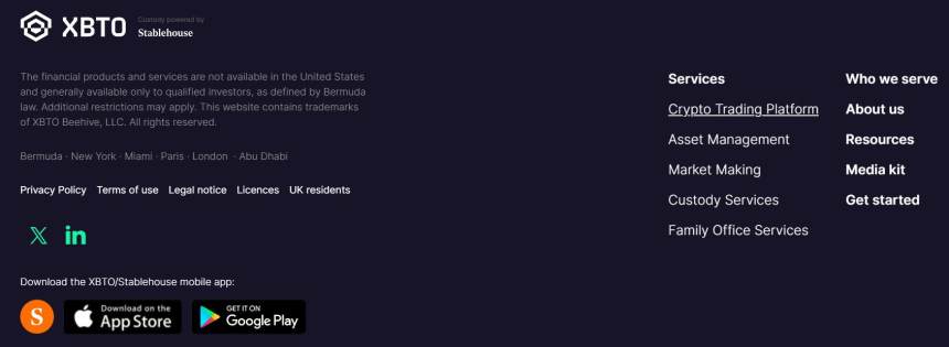 Stablehouse, yang kini menjadi bagian dari XBTO, menerapkan beberapa langkah keamanan yang kuat untuk melindungi pengguna dan asetnya. Bursa ini memiliki lisensi dari Bermuda Monetary Authority (BMA) berdasarkan Digital Asset Business Act 2018, yang memastikan kepatuhan terhadap standar regulasi yang ketat. Protokol keamanan meliputi autentikasi dua faktor (2FA) yang wajib untuk akses akun dan transaksi, yang meningkatkan perlindungan pengguna terhadap akses yang tidak sah. Selain itu, Stablehouse menggunakan enkripsi canggih dan praktik penyimpanan data yang aman untuk melindungi informasi dan dana pengguna.