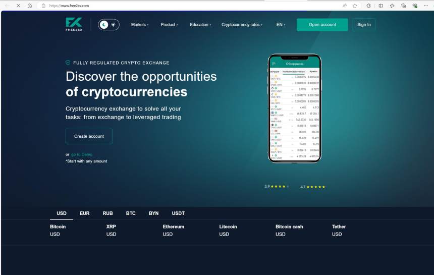Didirikan pada tahun 2019 di Belarus, FREE2EX adalah bursa kriptocurrency yang melayani trader baru dan berpengalaman. Pengguna baru dapat membeli kriptocurrency populer secara langsung menggunakan kartu debit atau kredit. Bursa ini menawarkan berbagai pilihan lebih dari 300 kriptocurrency untuk perdagangan spot, serta alat-alat canggih untuk trader berpengalaman. Perdagangan leverage juga tersedia, memungkinkan pengguna untuk memperbesar potensi keuntungan dengan dana pinjaman.