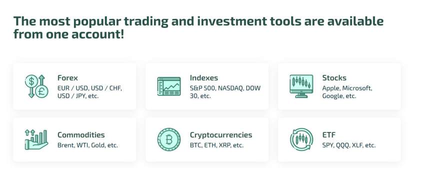 Valuta Asing (Forex): Pasangan mata uang utama seperti EUR/USD, USD/CHF, dan USD/JPY tersedia untuk perdagangan.