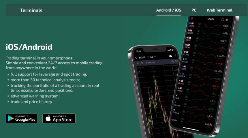 Terminal Windows: Dirancang untuk trader berpengalaman, platform yang dapat diunduh ini menawarkan berbagai jenis pesanan dan antarmuka yang sepenuhnya dapat disesuaikan. Selain itu, rangkaian lengkap alat analisis teknis terintegrasi langsung dalam grafik untuk analisis yang lebih baik.