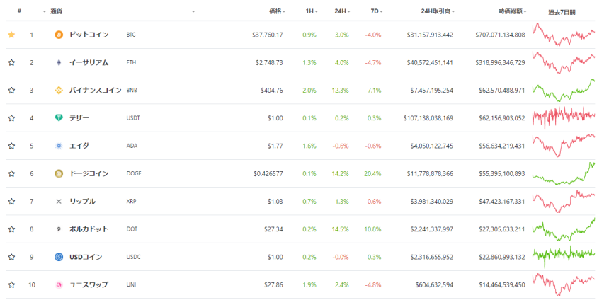 実際、2020年以降、DOGEはかなりの注目を集めています。Coingeckoのデータによると、DOGEは過去1年間で14464.6%の上昇率に達しました。過去24時間で14.1%を増えました。そして、DOGEもBCH、LTCなどを上回り、仮想通貨市場のトップ10に入り、6位になりました。