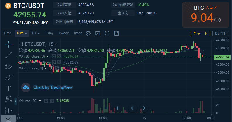 価格:$BTC/ $USDT $42955.74(4,717,828円)