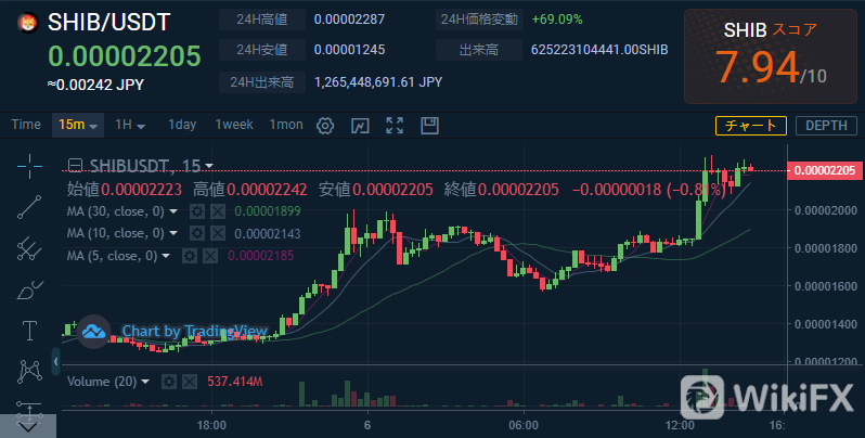 執筆時点で、SHIBの価格は0.000022 USDTで、24時間変動:+69.09%である。