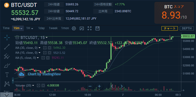 価格:$BTC/ $USDT $55532.57(6,099,142円)