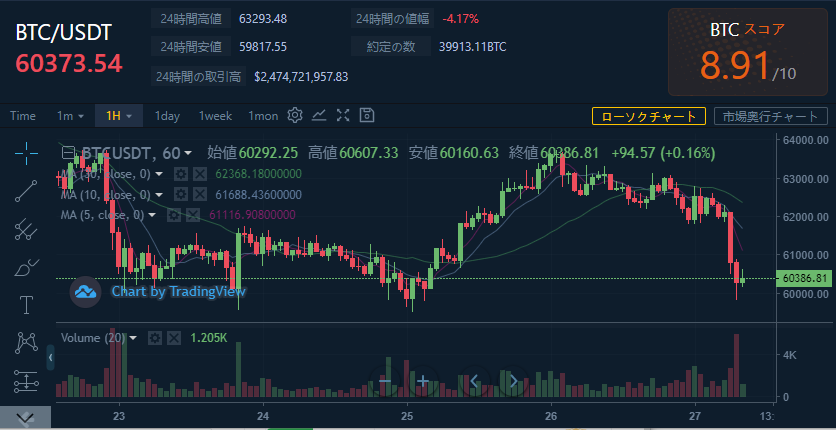 価格:$BTC/ $USDT $60373.54(6,906,743円)