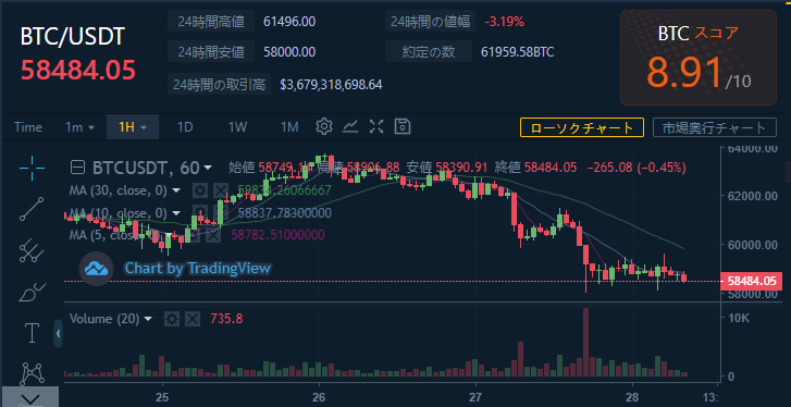 価格:$BTC/ $USDT $58484.05(6,670,128円)