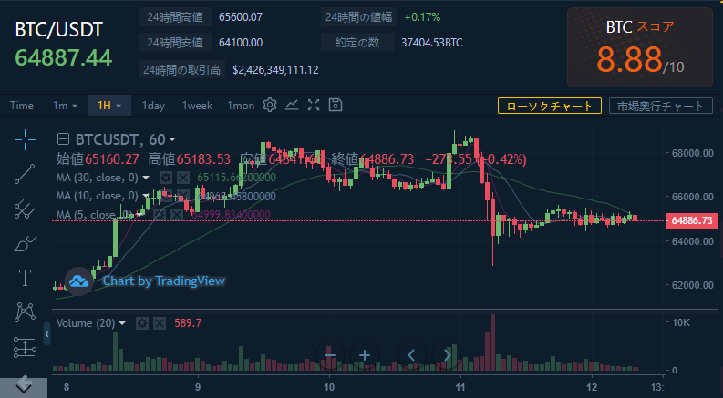 WikiBit 2021-11-12 07:50本日のBTCチャートとトークン上昇率Top3