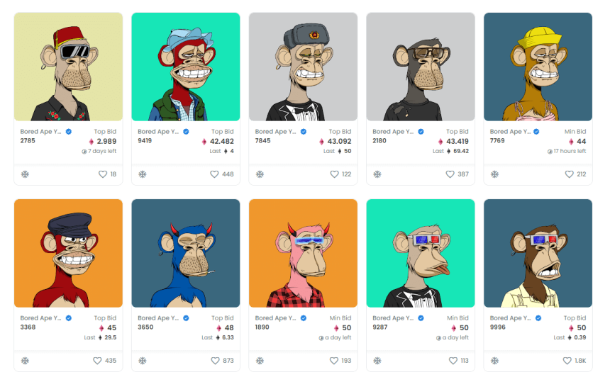 2021年4月よりNFTマーケットプレイスOpenSeaで販売を開始したBAYCは、当初は0.08ETHで購入することができた。しかし、NBAで2度MVPを受賞したことがあるプロバスケットボール選手のステフィン・カリー氏を始めとする多くの著名人がBAYCを購入したことが話題になり価格は急騰し、もはや安価なBAYCでも40ETH~50ETH(2000万円~2500万円相当)前後の価格になっている。
