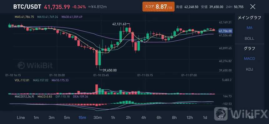 WikiBit 2022-01-11 08:04本日のBTCチャートとトークン上昇率Top3