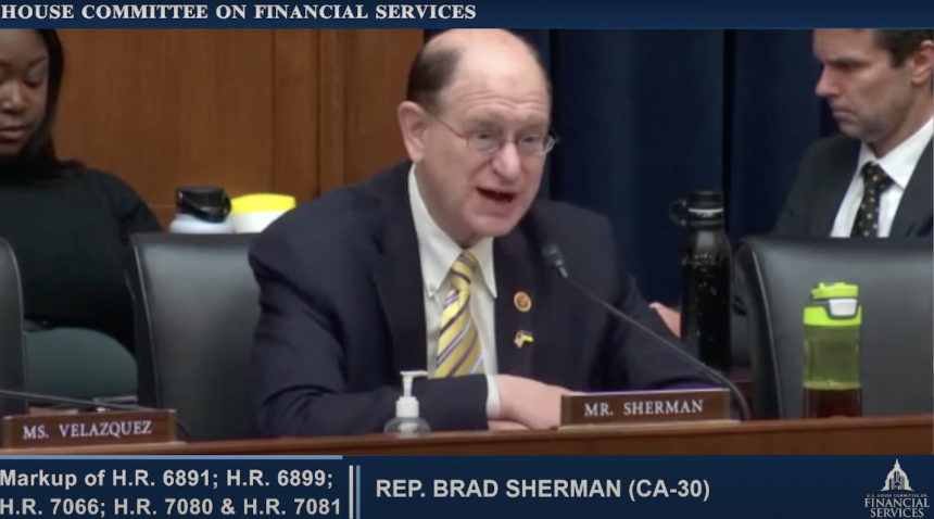 Representative Brad Sherman addressing the House Financial Services Committee on Thursday