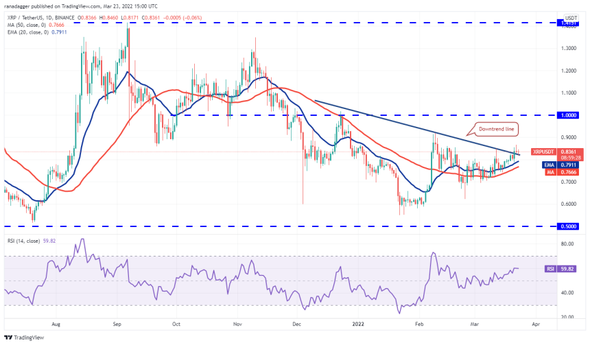 リップル(XRP)は3月21日にダウントレンドラインをブレイクし、その上で取引を終えたが、強気派は上昇を続けることが難しいと感じている。これは、需要が高値で枯渇することを示している。
