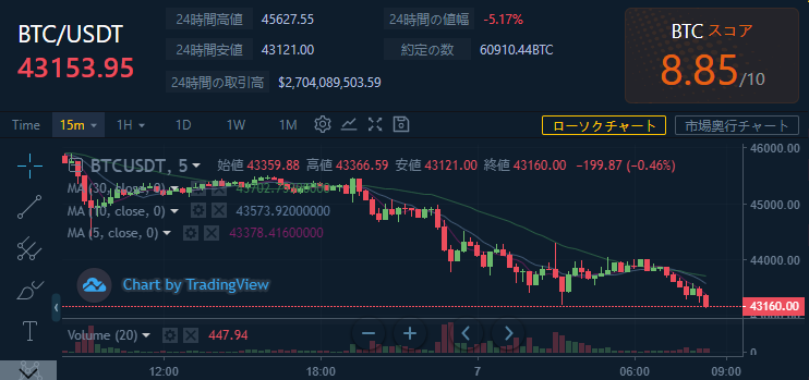 価格:BTC / USDT $43153.95(5,362,008円)