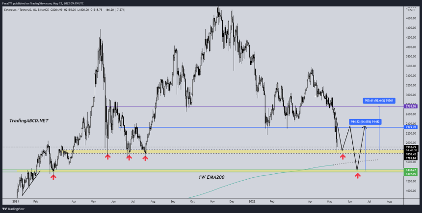 1700ドル台前半への急落を受け、仮想通貨アナリストのRekt Capitalは、主要なサポートゾーンとレジスタンスゾーンを示すチャートを投稿した。