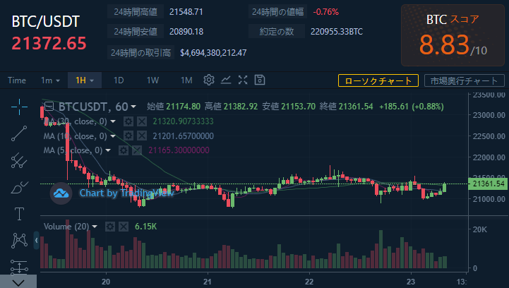 価格:BTC / USDT 21372.65(2,933,738円)