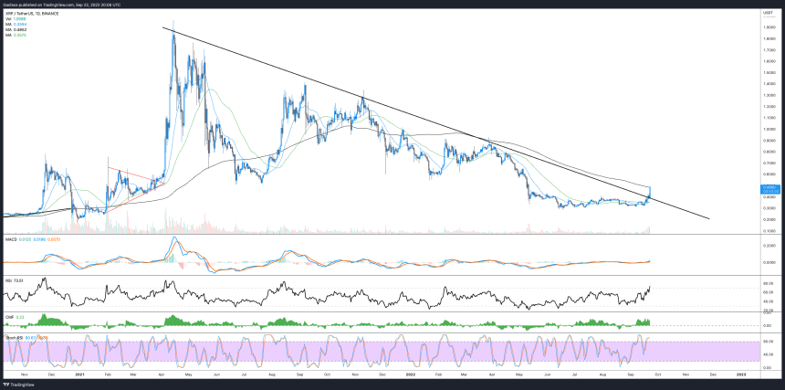 RSRとアスターネットワーク (ASTAR) もそれぞれ23%と17%急騰したが、この日の注目すべき動きはXRPだった。