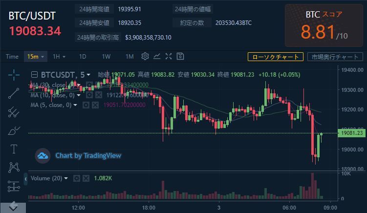 価格:BTC/USDT 19083.34(2,763,131円)