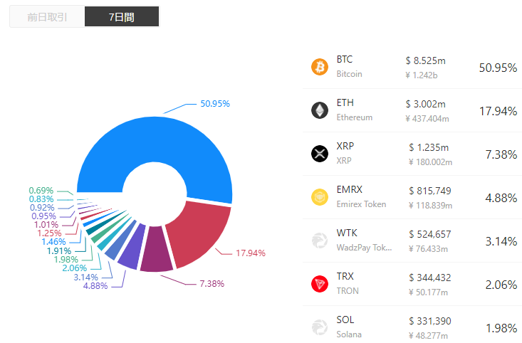 主要な取引暗号通貨:ビットコイン(BTC)、イーサリアム(ETH)、リップル(XRP)