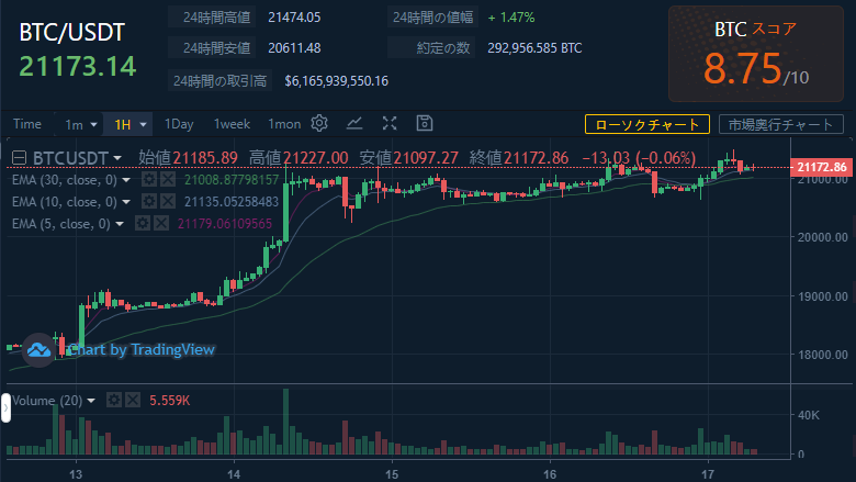 価格:BTC / USDT $21173.14(2,717,743円)