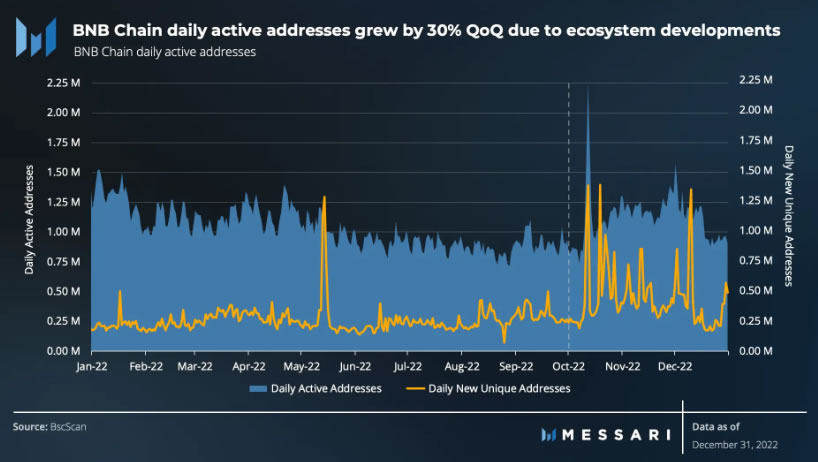 最新の調査によると、バイナンスのネイティブブロックチェーン「BNBチェ―ン」は、仮想通貨の弱気市場にもかかわらず、昨年第4四半期に安定した活動の伸びを示し続けた。