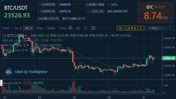 価格:BTC / USDT $23,526.93(3,206,446円)
