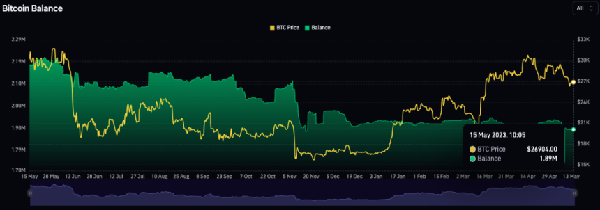 仮想通貨分析プロバイダーのコイングラス社によると、現在流通している約1900万BTCのうち、189万BTC(約5070億ドル)がバイナンスやコインベースなどの主要な中央集権型取引所に保有されている。