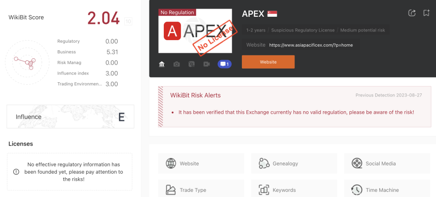 APEXは取引所として適切な規制監督を欠いていることが確認されています。この有効な規制の欠如は、参加者に固有のリスクをもたらすため、注意が必要であることを強調しています。