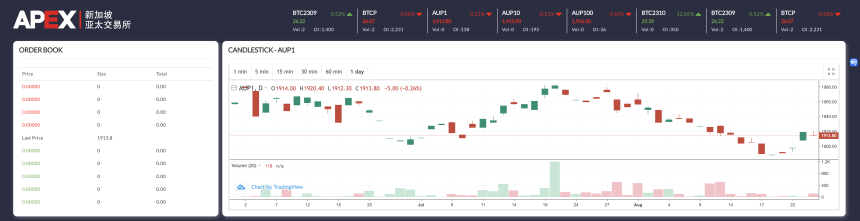 価格の範囲は26.07~29.39で、BTC2310が最高価格、AUP1が最低価格となっている。出来高も少なく、2 BTC2309 コインのみが取引されています。