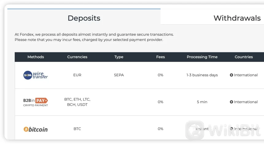 3. 銀行電信送金、クレジット/デビットカード、電子ウォレットなどの複数の支払い方法を受け入れます。 Fondexさまざまな支払い方法を受け入れることで利便性と柔軟性を提供し、ユーザーが資金の入出金を簡単に行うことができます。