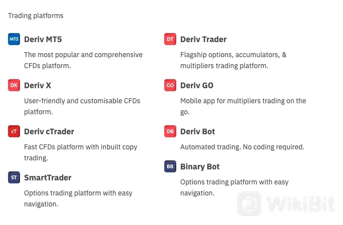 Derivは、トレーダーのさまざまなニーズと好みに合わせた多様な取引プラットフォームのエコシステムを提供しています。