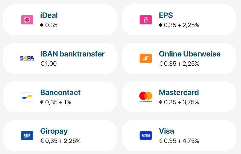 さまざまな支払いプロバイダの入金手数料:通常の出金:€0.50